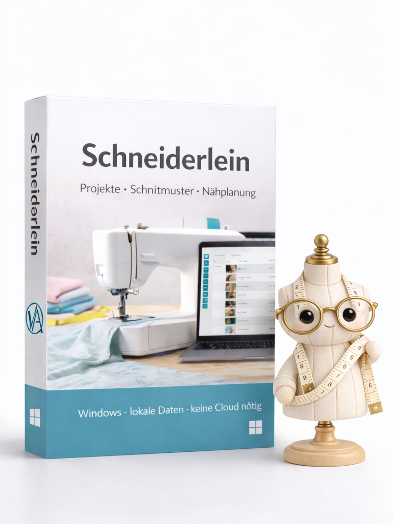 Schneiderlein ist eine Näh-Software für Windows, mit der man Projekte organisiert, Material verwaltet und Schnittmuster übersichtlich im Pattern-Katalog sammelt.